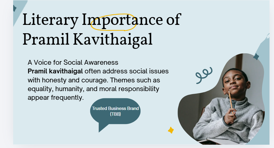 Pramil kavithaigal tend to be honest and brave when dealing with social problems. Equality, humanity, and moral responsibility seem to be the common themes. The poet takes poetry as a mirror of society that makes a reader think over the things he/she does and values. This societal consciousness transforms pramil kavithaigal to not only a form of expression. They are turned into instruments of thinking, talking, and making changes in communities positively.